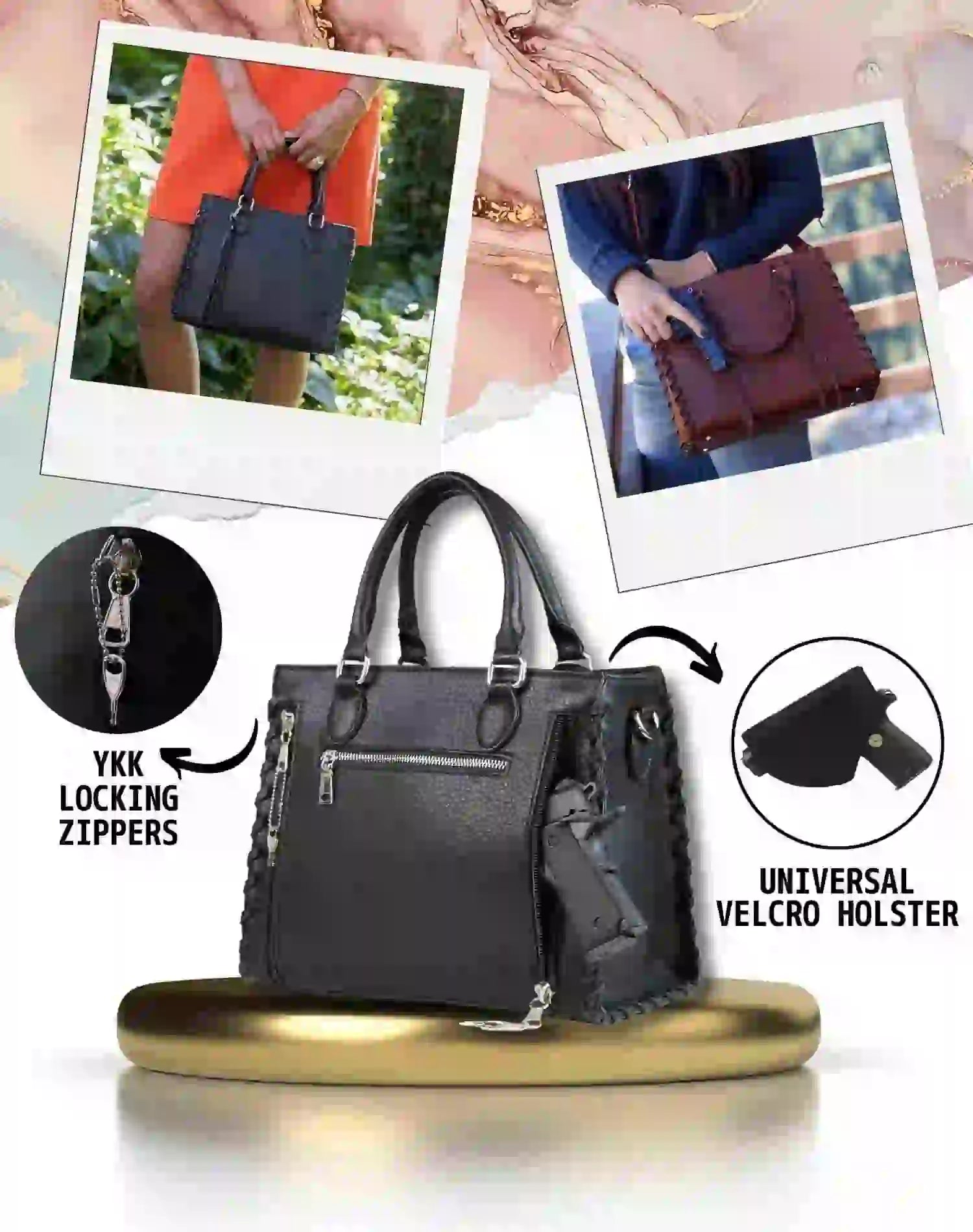 Lady Conceal purses are crafted with exquisite care, using either 100% full-grain cowhide leather or premium faux leather.